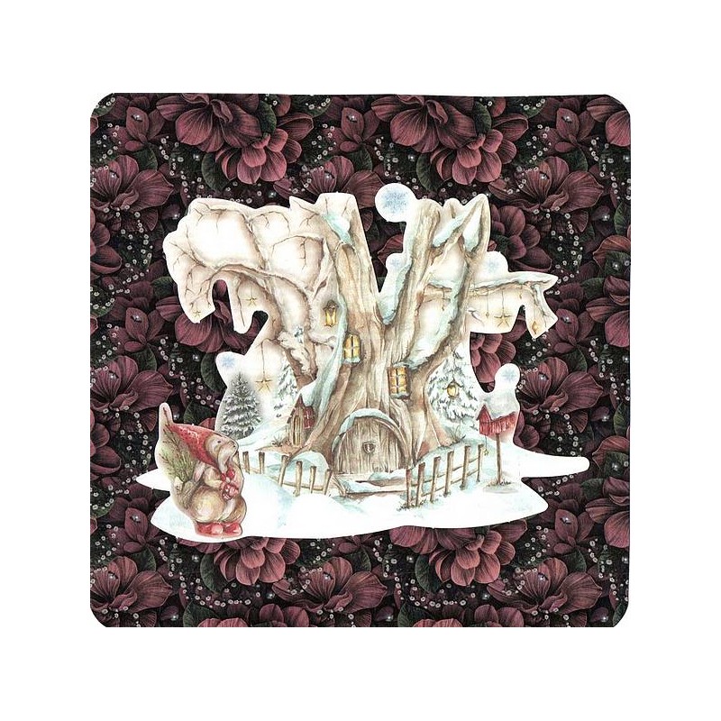 Carte de Noël carrée Lapin et sa chaumière