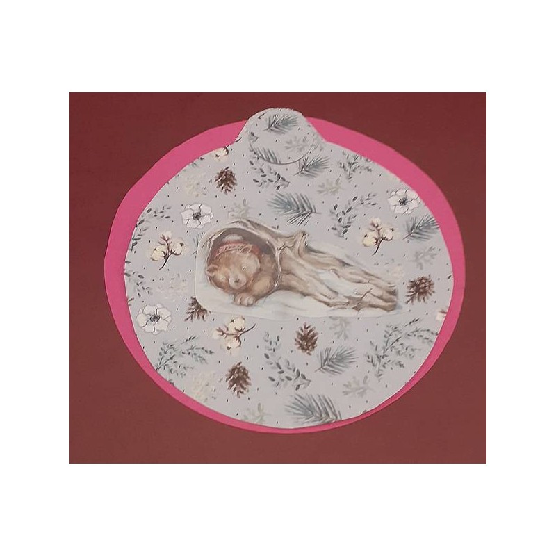Carte ronde boule de Noël avec ours endormi