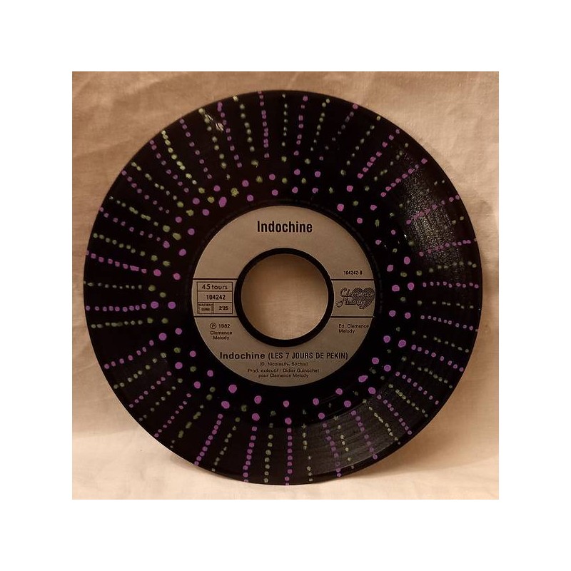 Vinyle 18cm décoré pointillés violets et verts