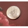 Badge artisanal Alice beige : timbre Lewis Carroll